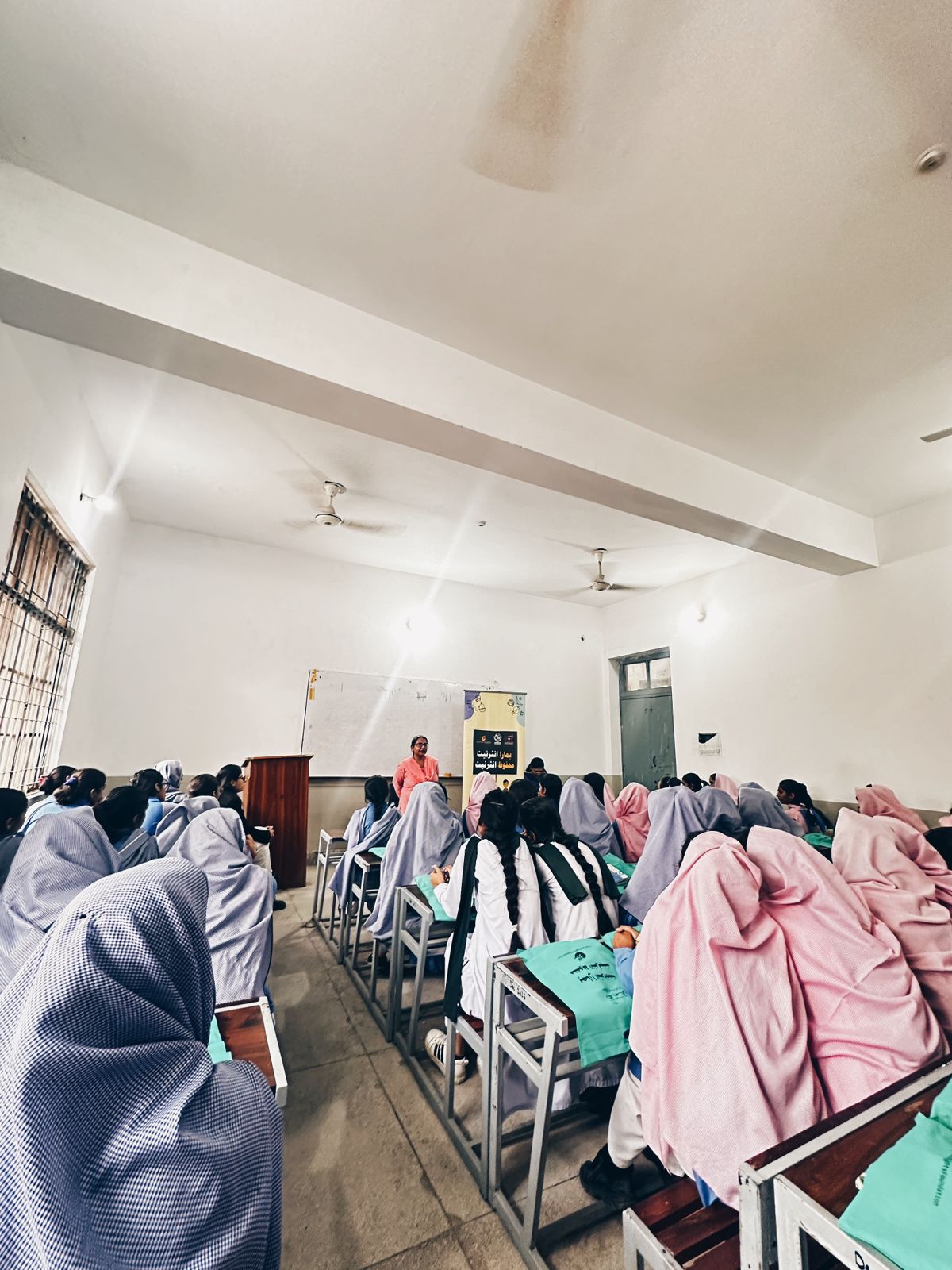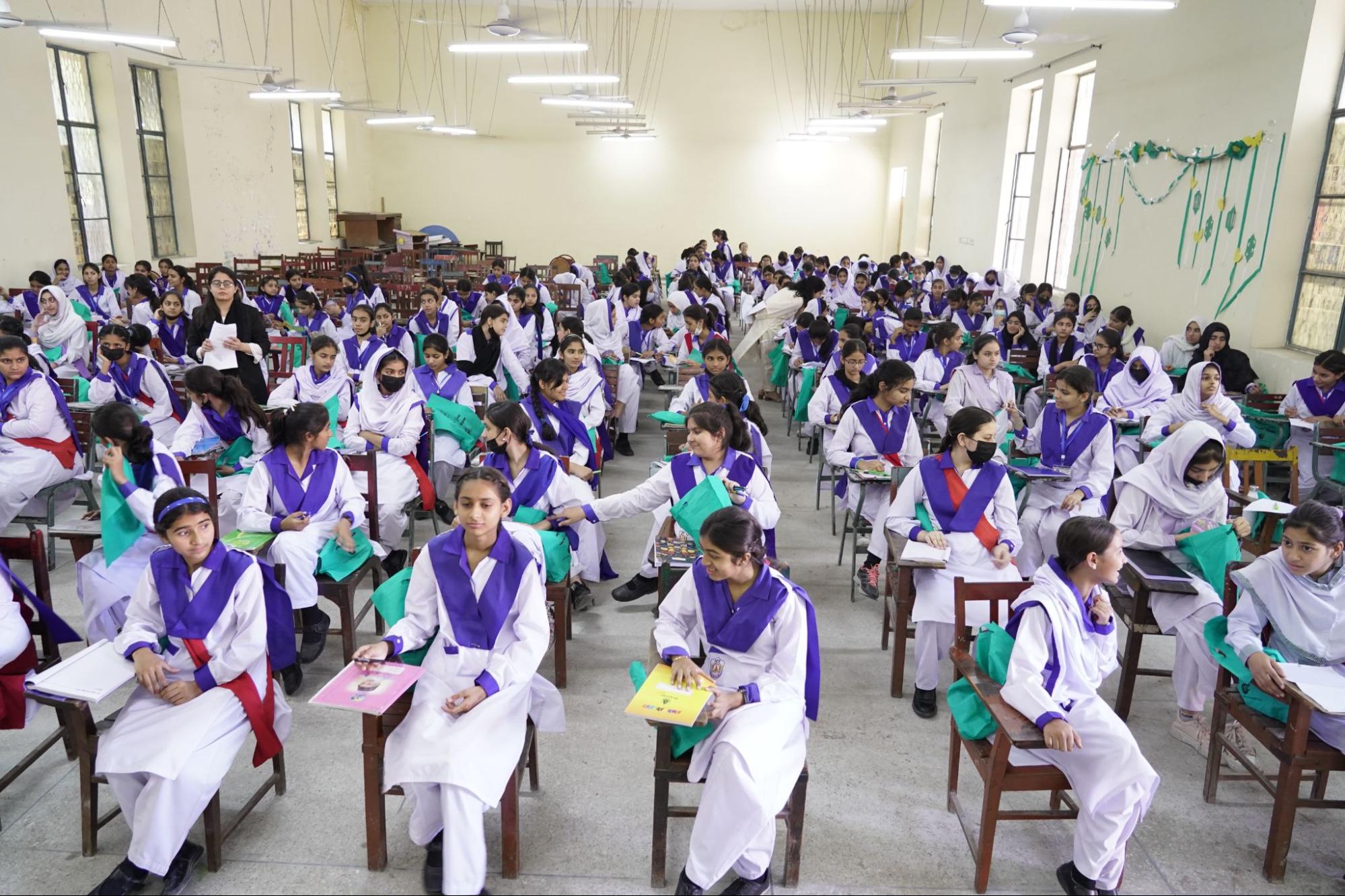 After the Ramadan break and final exams, DRF held two sessions in government high schools in Lahore. 357 students (females and males) and 9 teachers were informed about ways of staying safe in online spaces and reporting mechanisms in case of harassment or bullying. The participants were given gift bags with online safety resources and stationary.
