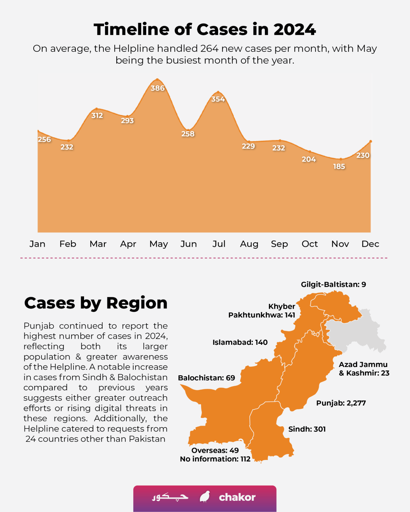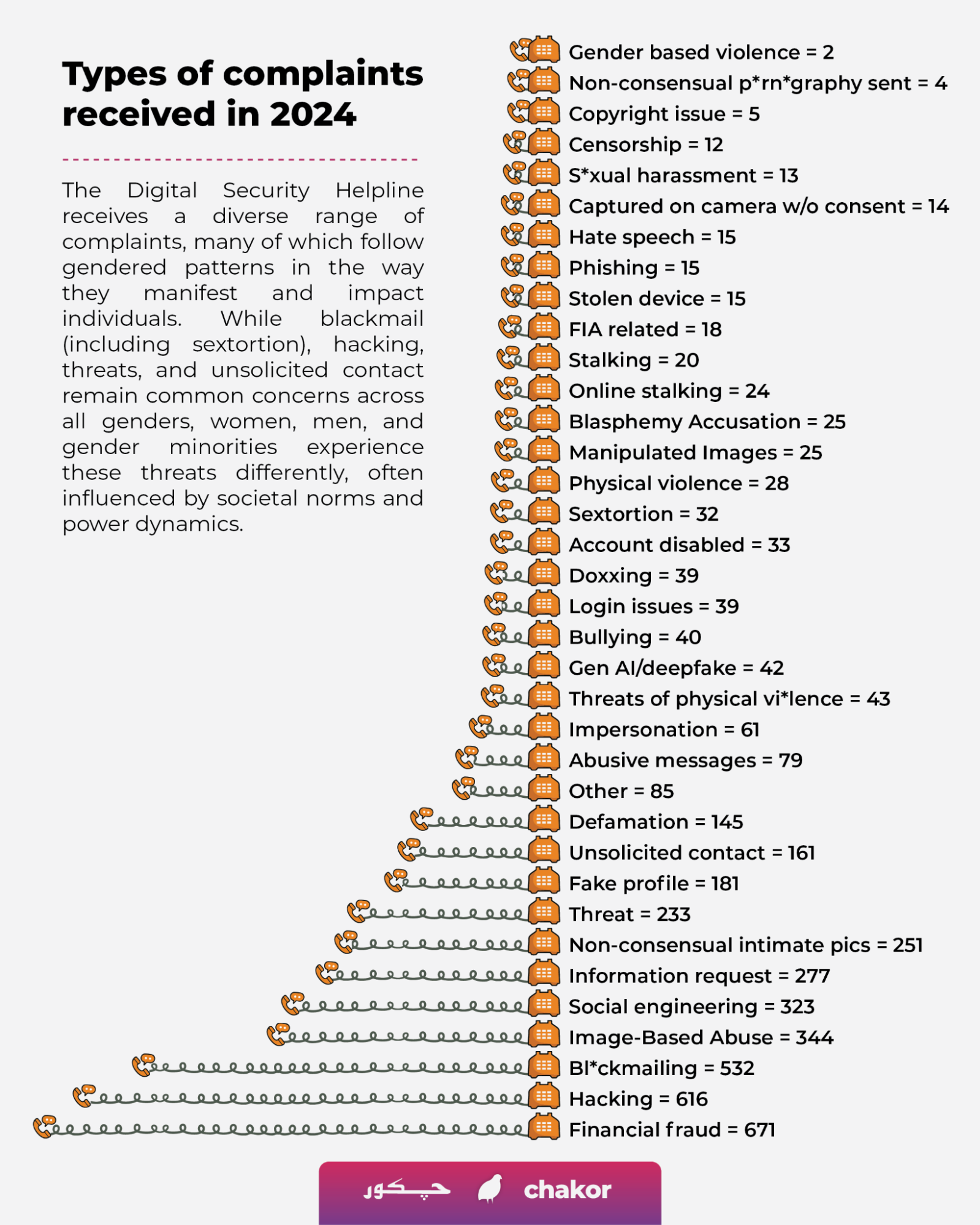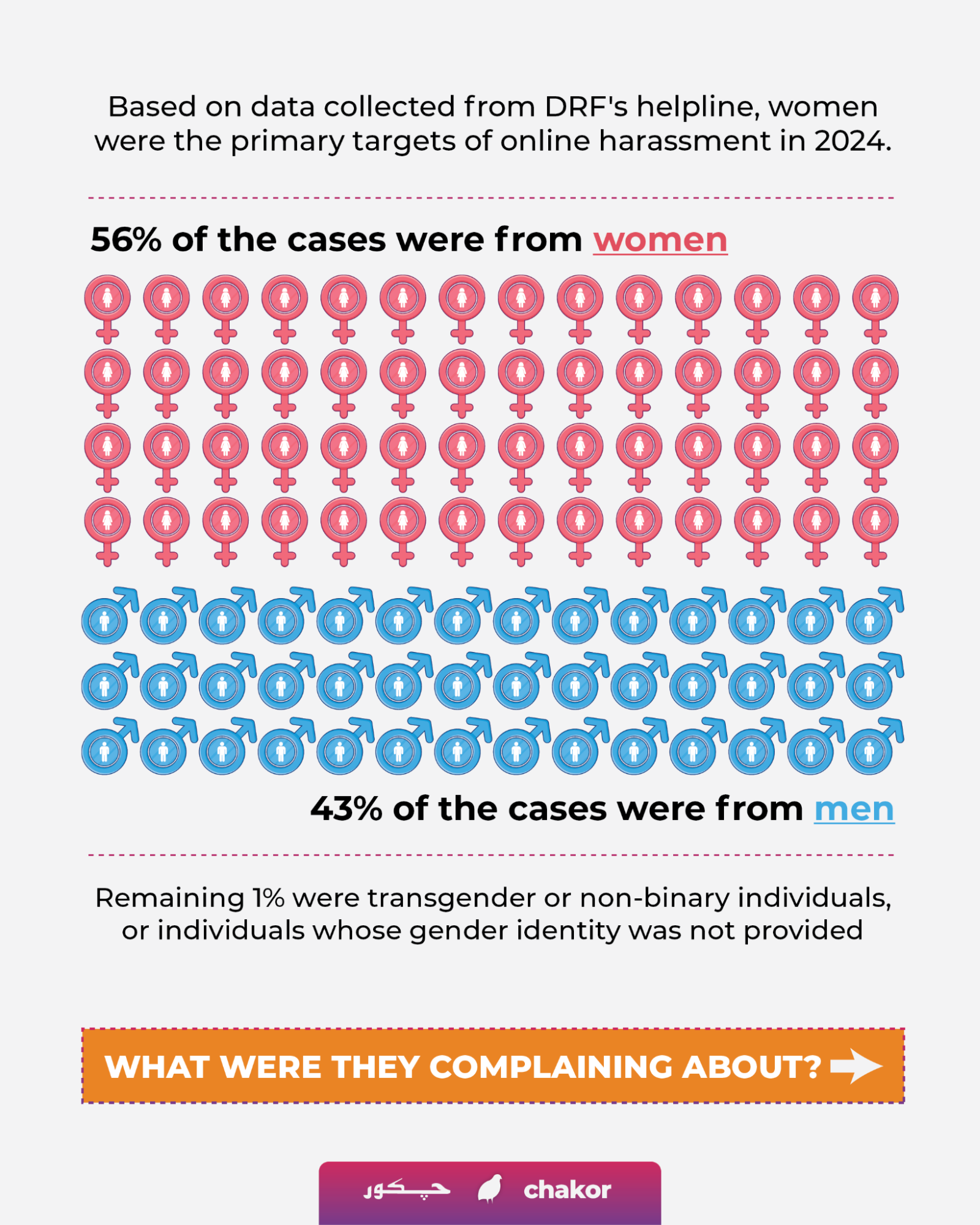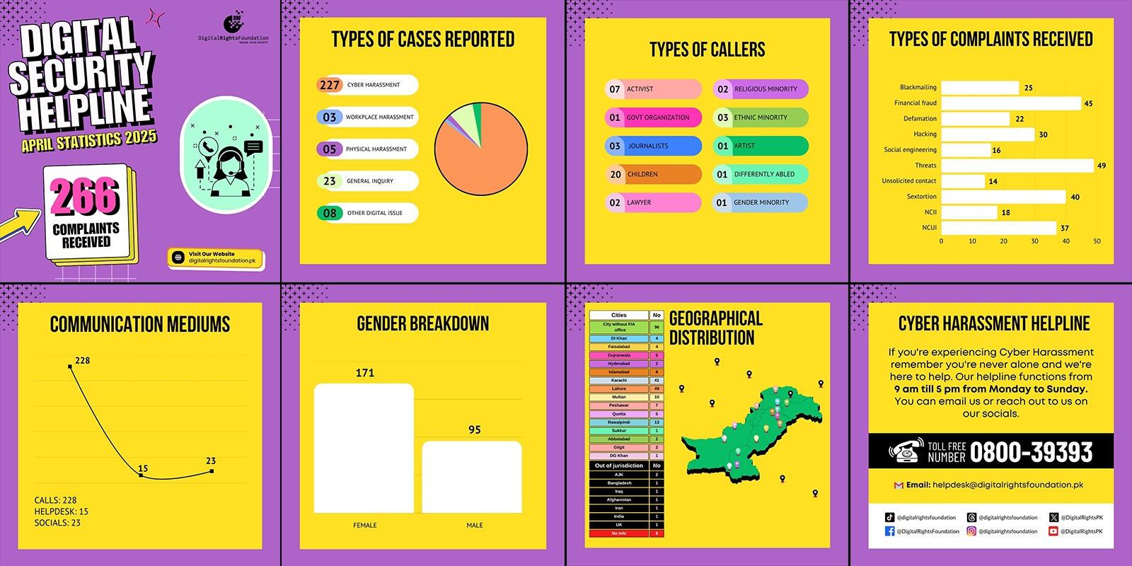 The Digital Security Helpline received 266 complaints in April 2025, of which 227 (85%) were related to cyber harassment.