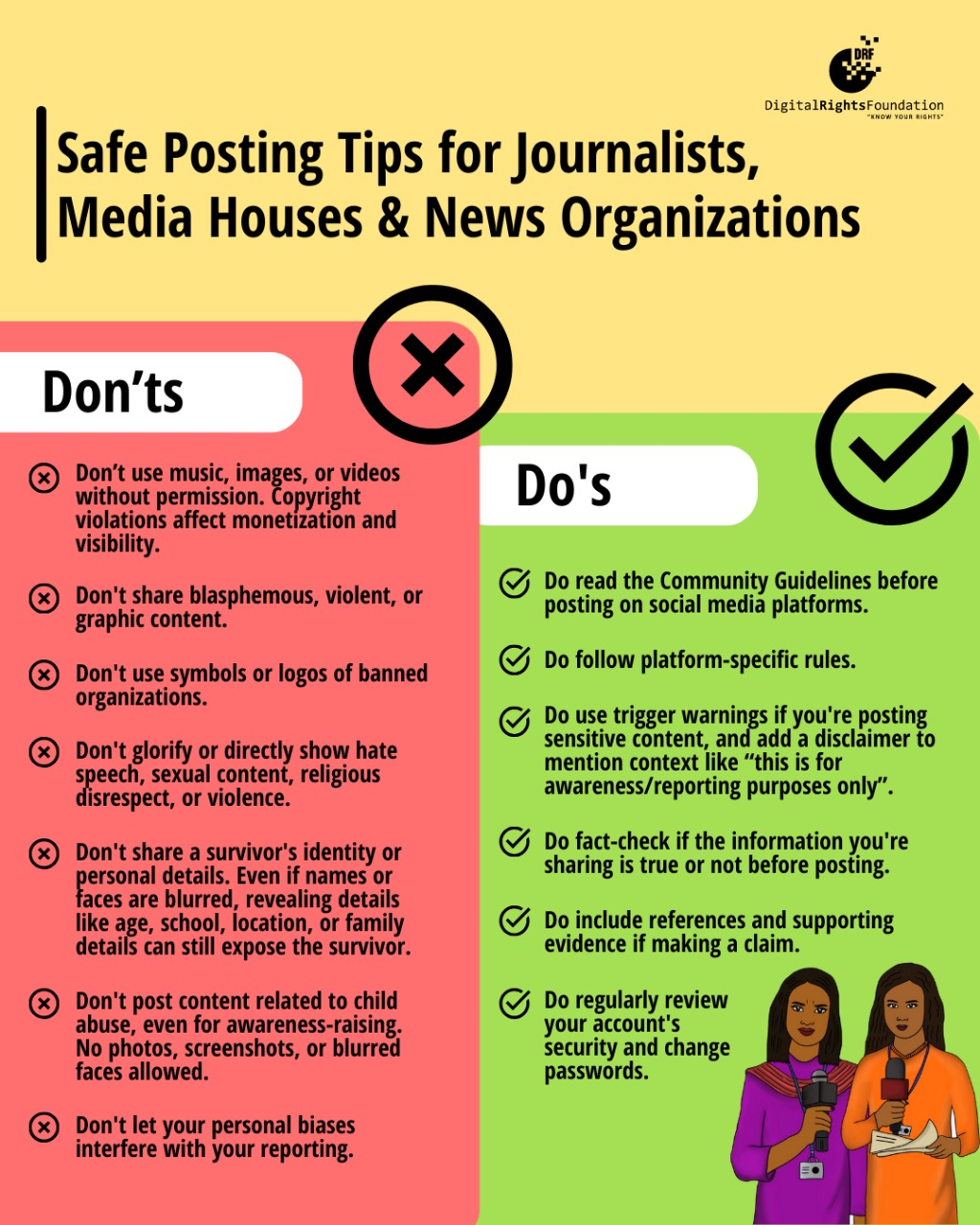 The Digital Security Helpline produced a checklist for safe posting tips for journalists and media personnel, such as adding trigger warnings or reading Community Guidelines.