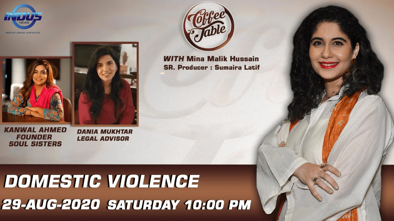 DRF’s Dania Mukhtar participated on Indus News on the show Coffee Table with Mina Malik Hussain with Kanwal Ahmed (Founder of Soul Sisters) around domestic violence. Dania highlighted the cases the cyber harassment helpline has received around domestic violence and also mentioned Ab Aur Nahin as a resource to victims of domestic violence.