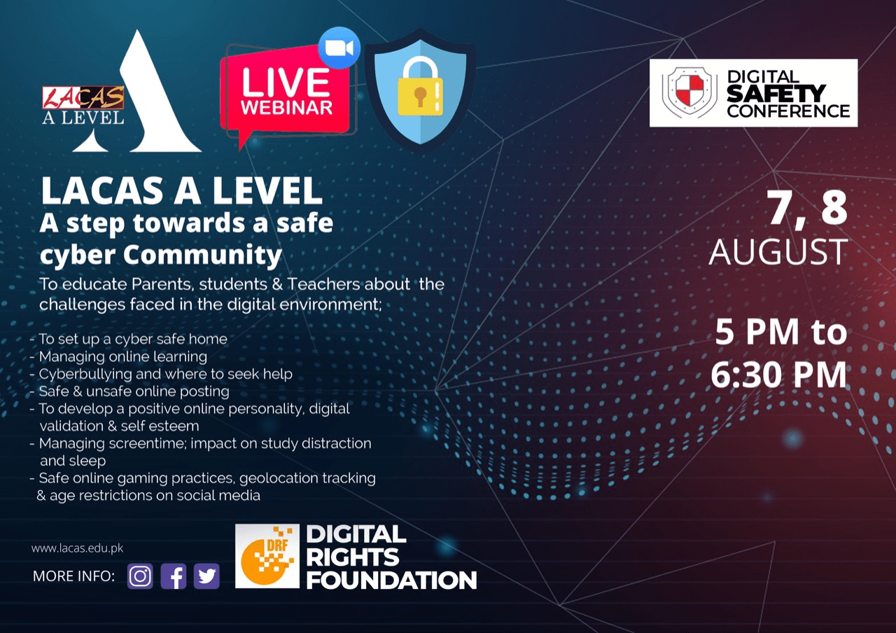 DRF and LACAS, in collaboration, hosted the “Digital Safety Conference” to create a better understanding of how the digital world works and its impact on students. Moreover, bring students, teachers and parents on the same page of how to deal with the pressing issues related to the digital world. The event was held virtually and included representatives from a social media company, legal specialists, mental health counselors and student speakers. The two panels in the conference included “Cyberbullying, its Impact and being a Responsible Netizens” and “Parenting in the age of the internet”.