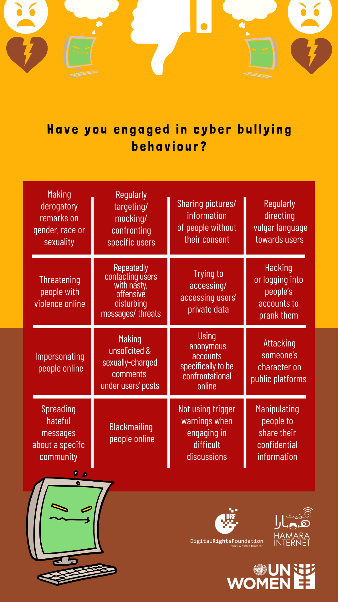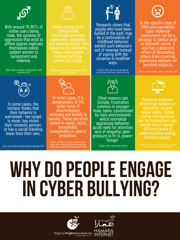 In order to combat cyber bullying, which ruins people’s online experiences, we need to understand why people do this so that we are able to design our strategies accordingly. DRF released an infographic to shed light on some of these reasons.