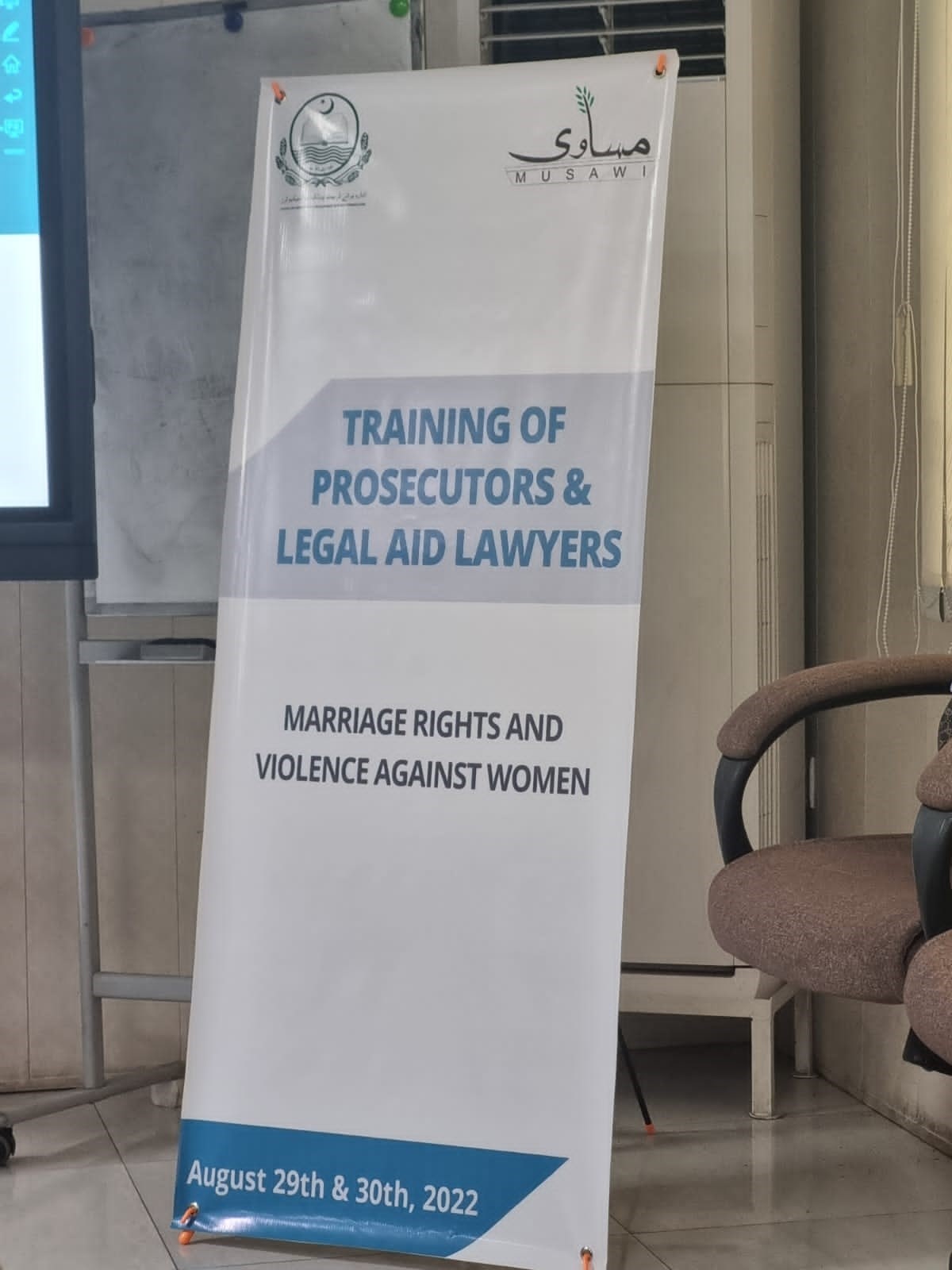 Legal Team attended a two (02) day training organized by Musawi in collaboration with the Center for Professional Development of Public Prosecutors,“Training for Prosecutors & Legal Aid Lawyer on women’s marriage rights and violence against women laws” on the 29th and 30th August 2022. The session initiated with a brief overlook on the concept of gender sensitization leading to an elaborate discussion on women’s protection laws, laws including but not limited to The Anti-Rape (Investigation and Trial) Act 202, Punjab Protection of Women Against Violence Act 2016 and others. Furthermore, the training touched upon the practical touchstones of the women’s marriage rights in Punjab and endorsed increased dialogue, information sharing about nikkahnama (marriage contract), and advocacy for marriage laws.