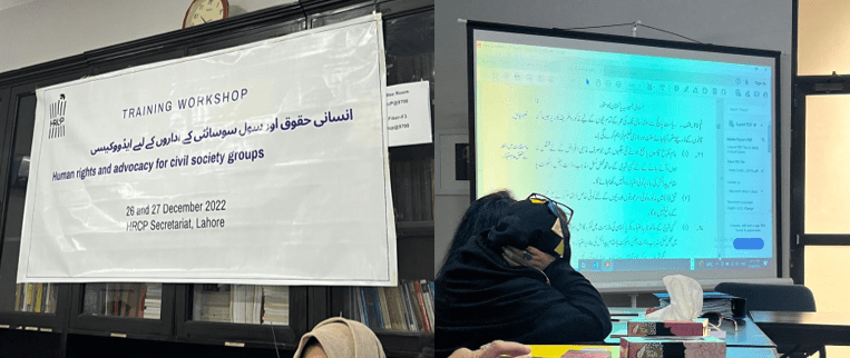 On the 26th and 27th of December 2022, the Human Rights Commission of Pakistan (HRCP) held a two-day training workshop titled ‘Human rights and advocacy for civil society groups’. Anam Baloch, Project Manager DRF was in attendance. The training seminar centered on the fundamental rights outlined in the Constitution of Pakistan, the international human rights framework, the intricacies of advocacy, and online safety.