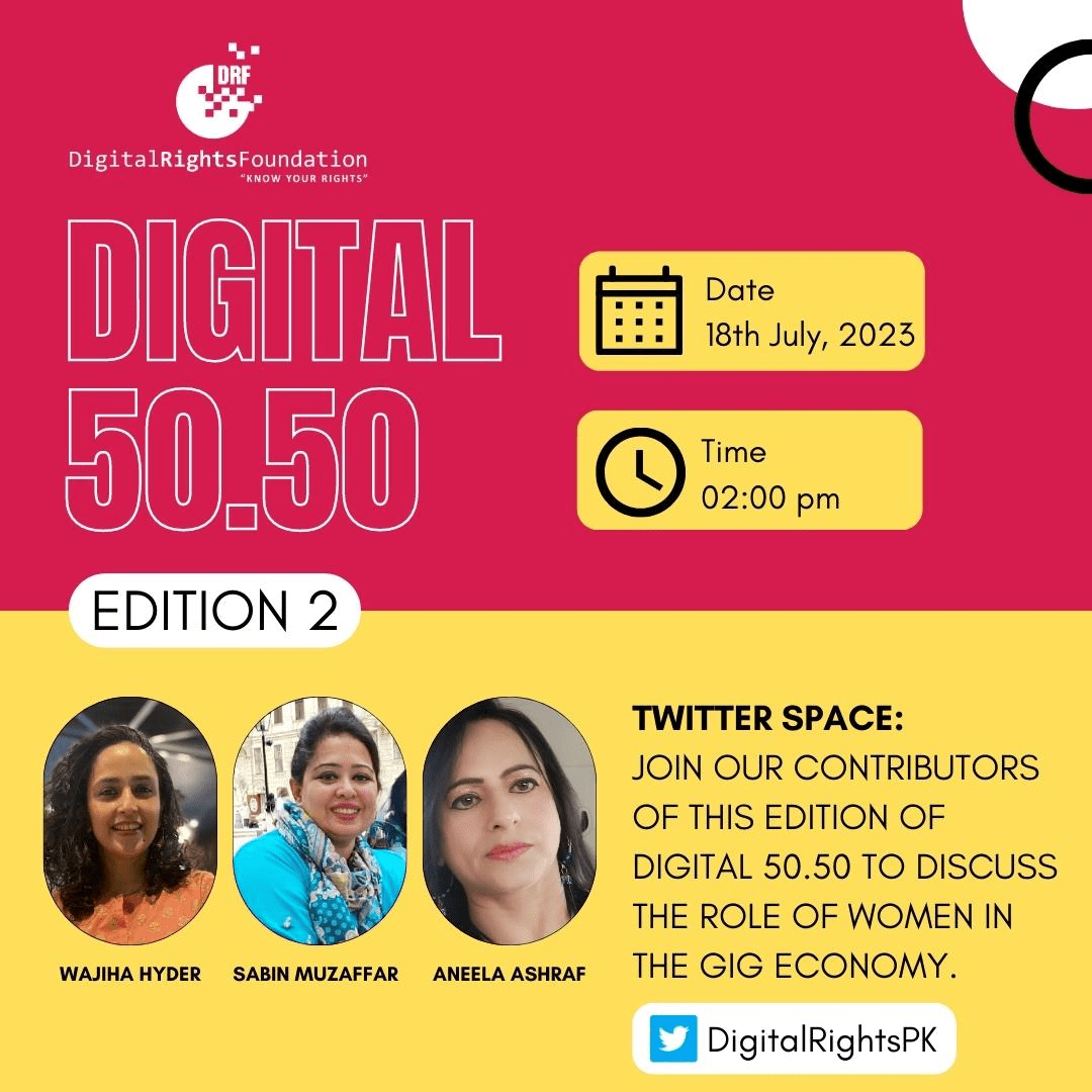 Digital 50.50 contributors Wajiha Hyder, Sabin Muzaffar and Aneela Ashraf were part of a twitter space on the role of women in the gig economy highlighting their contributions in the second edition of Digital 50.50.