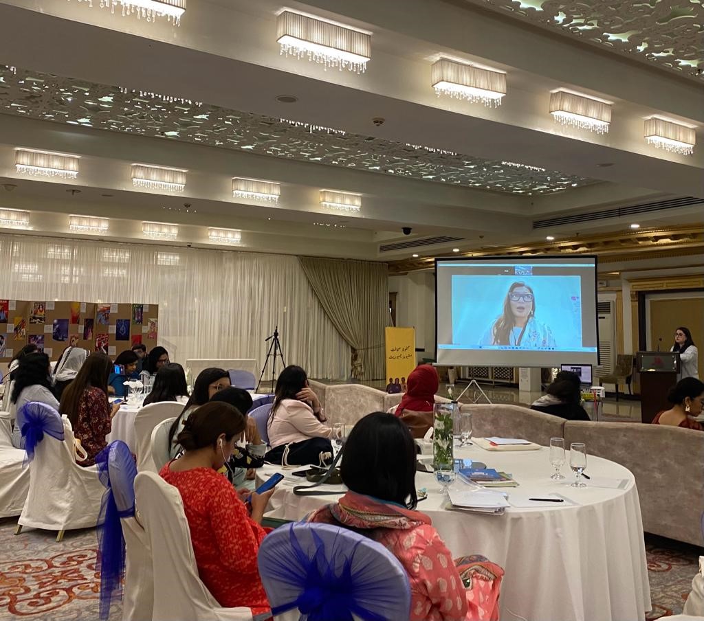 The event started off with welcome remarks by Maryam Saeed, Program Manager at Digital Rights Foundation, who added, “We have gathered today to focus on what we have built at DRF over the past seven years. We are celebrating abundance today, of the relationships and friendships our NWJDR has developed and nurtured throughout our journey.” Maryam talked about the accomplishments of the seven-year project amplifying the experience of working with and supporting women journalists across Pakistan. She also highlighted the importance of DRF’s nationwide network of women journalists which serves as a safe space where these women turn to each other for support and solidarity in the absence of support mechanisms.