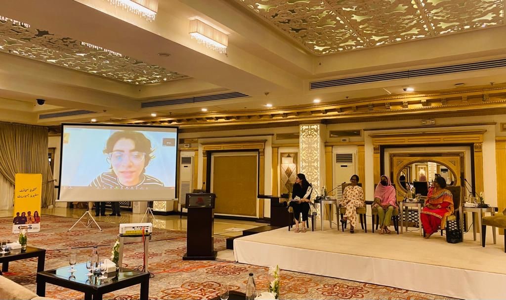 The first panel of the conference, ‘Unpacking the Mosaic of Digital 50.50’ was a conversation with the contributors of Digital 50.50 moderated by Maryam Saeed. The panelists included women journalists, Umaima Ahmed, Khalida Niaz and Aneela Ashraf, and Digital 50.50 illustrator Bushra Saleem. Khalida Niaz shared her experience of working on stories from tribal areas in Pakistan and the difficulties women journalists face in making their voices heard. She said, “platforms like Digital 50.50 are crucial to amplify women’s voices through different mediums and local languages to cater to a large audience”.
