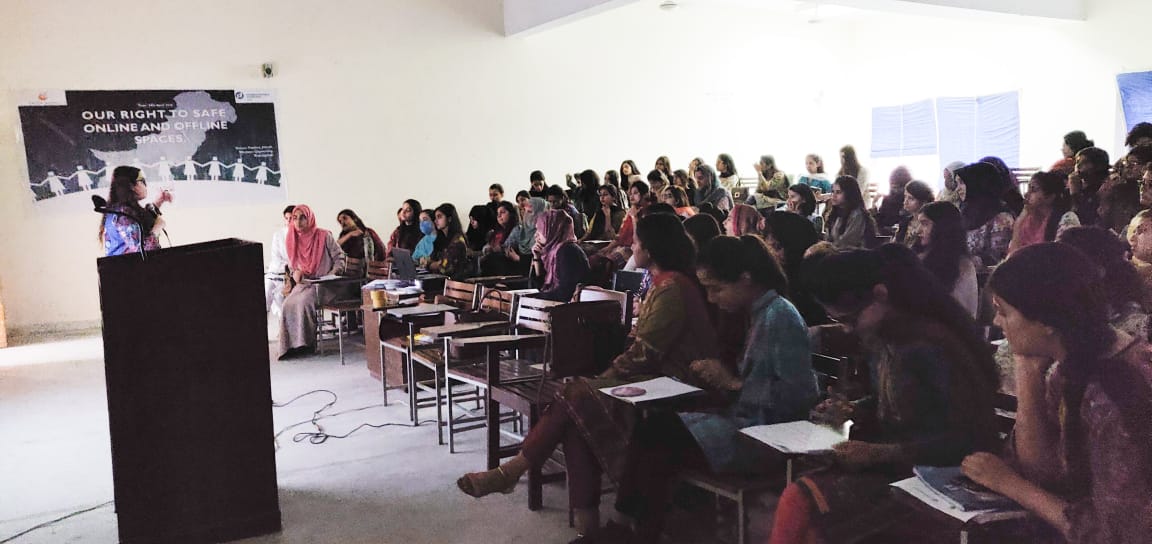 DRF conducted a seminar on “Our Right to Safe Online and Offline Spaces” at Fatima Jinnah Women University, Rawalpindi on April 24th, 2019 where discussed the vulnerabilities of young men and women were face in online spaces and focusing on the current legislation regarding offline and online harassment to have a much needed debate around safe spaces on campus.