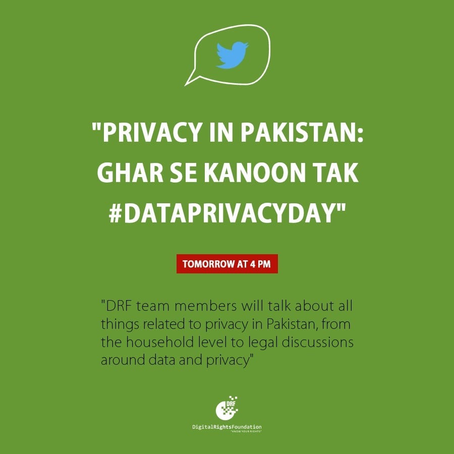 In this Tweet Chat, DRF team members spoke about all matters pertaining to privacy in Pakistan, from the household level to legal discussions around data and privacy in the country.