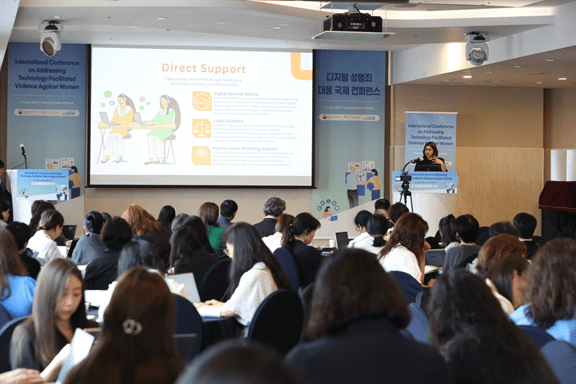 The International Conference on Addressing TFVAW was held in Seoul, Republic of South Korea from 1-2 July, to foster dialogue on the challenges and best practices in implementing policy measures to address TFVAW. The conference brought together 150 stakeholders, including experts dedicated to TFVAW measurement, policy, and prevention, and specifically focused on the measurement, prevalence, victim support, and regulatory frameworks and policies related to TFVAW. To that end, DRF presented its Cyber Harassment Helpline project, and how it operates, advocates for survivors, and collects and analyzes data for research.