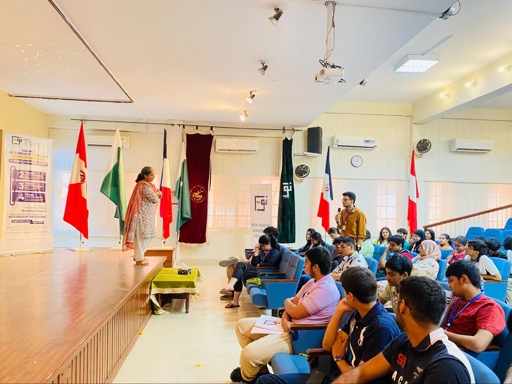 DRF held a session with 55 students of O-Level and A-Level at Fatima Memorial’s NUR Foundation’s internship program in Lahore. They were informed how to counter cyberbullying, staying safe in online spaces and legal avenues to adopt incase of harassment or scams. They were also given helpline brochures.