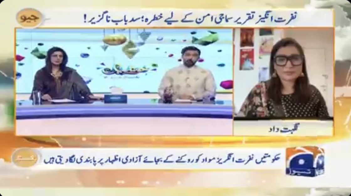 Nighat Dad spoke about online hate speech and trolling on Geo Pakistan.