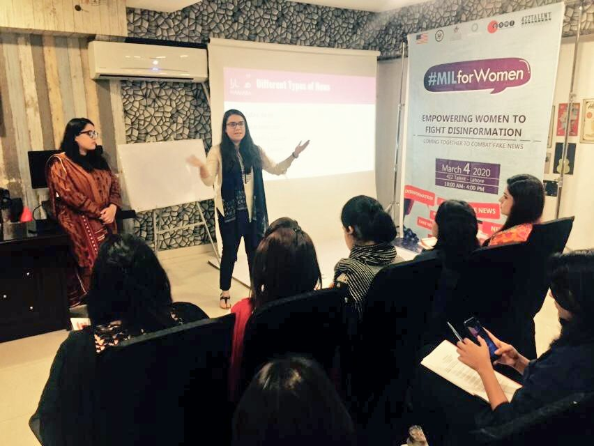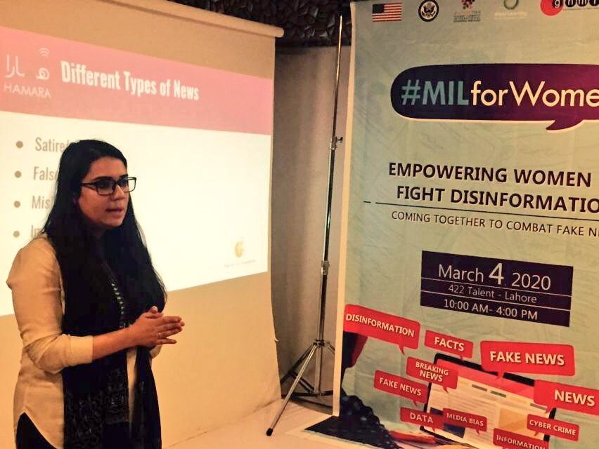 DRF in collaboration with Global Neighborhood For Media Innovation (GNMI) conducted a session on empowering women to fight disinformation- coming together to combat fake news on 4th March 2020 in Lahore. The session focused on how fake news manifests itself in online spaces and the importance of source verification for not only journalists but also common citizens of the country. The audience included female journalists and media practitioners.