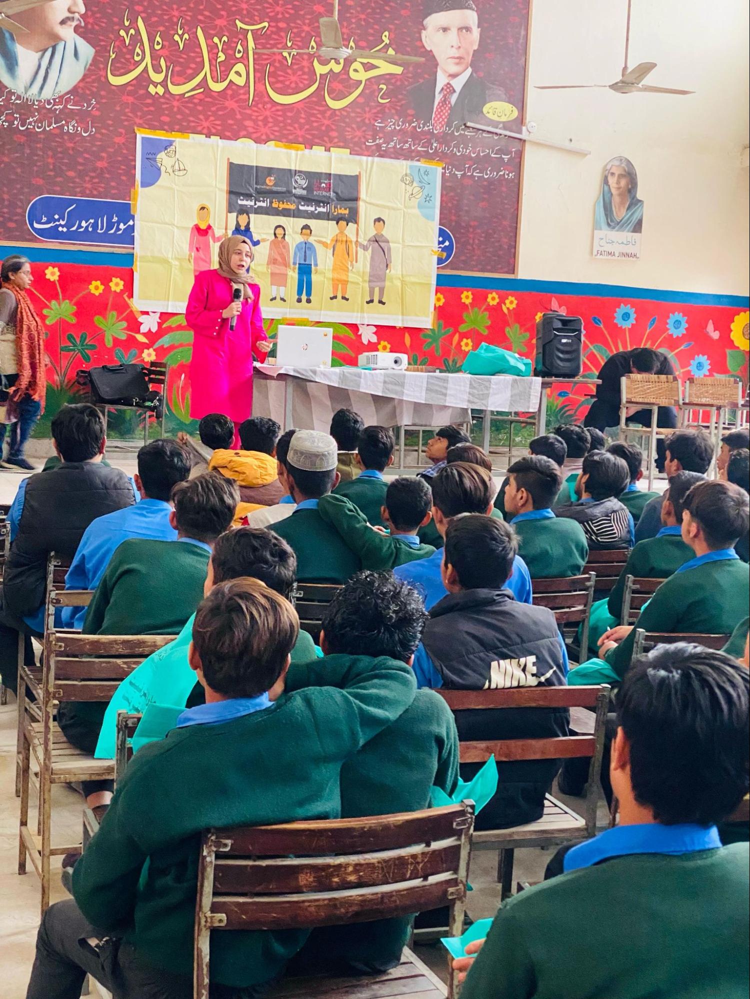 This month DRF held four schools in Lahore with their Digital Citizens program. 735 students (females and males) and 44 teachers were informed about ways of staying safe in online spaces and reporting mechanisms in case of harassment or bullying. The participants were given gift bags with online safety resources and stationary.