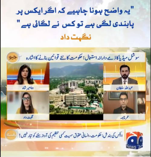 Nighat Dad on X shutdown on Geo News