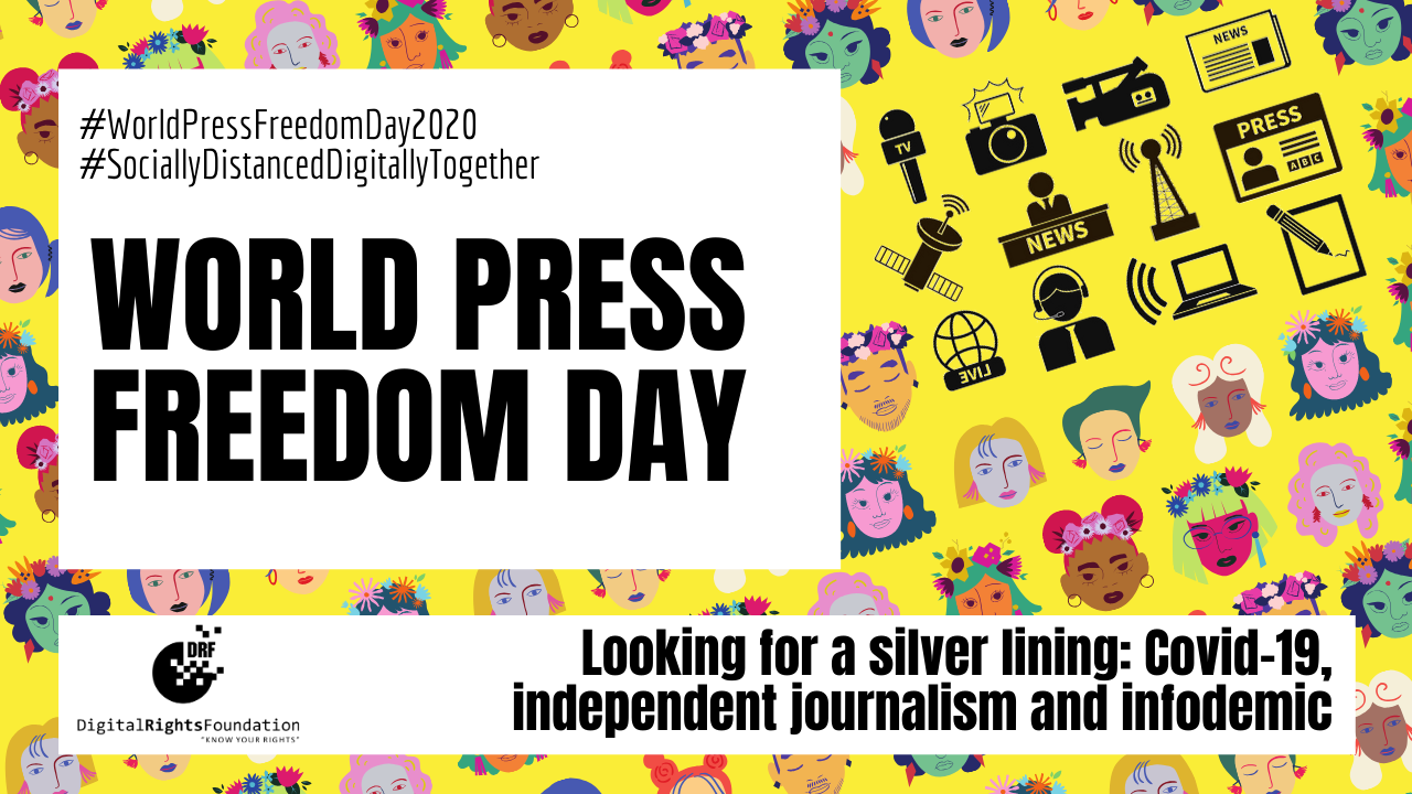 Digital Rights Foundation conducted a three-day campaign to raise awareness on World Press Freedom Day, 3rd May 2020, on how the COVID-19 pandemic and the subsequent surge in misinformation impacting press freedom. The campaign included three facebook live sessions hosted by our Executive Director Nighat Dad and other team members with amazing journalists including, Amber Rahim Shamsi, Maham Javaid and Najia Asher. The themes of discussion revolved around coronavirus and journalism: disinfodemic and its impact on independent journalism; journalistic frontline, transforming newsrooms and increased stress; and surveillance structure and press freedom. DRF also shared resources and tools by other organisations that can help journalists in fact-checking information around COVID-19. Five infographics on the theme were also developed and shared on DRF’s socials for awareness raising.