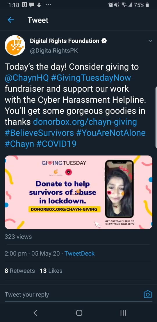 Chayn raised funds for its friends and partners on a great initiative called ‘Giving Tuesday’. Chayn raised money for the cyber harassment helpline which provides three basic services to its callers which is digital security, legal aid and psychological counselling.