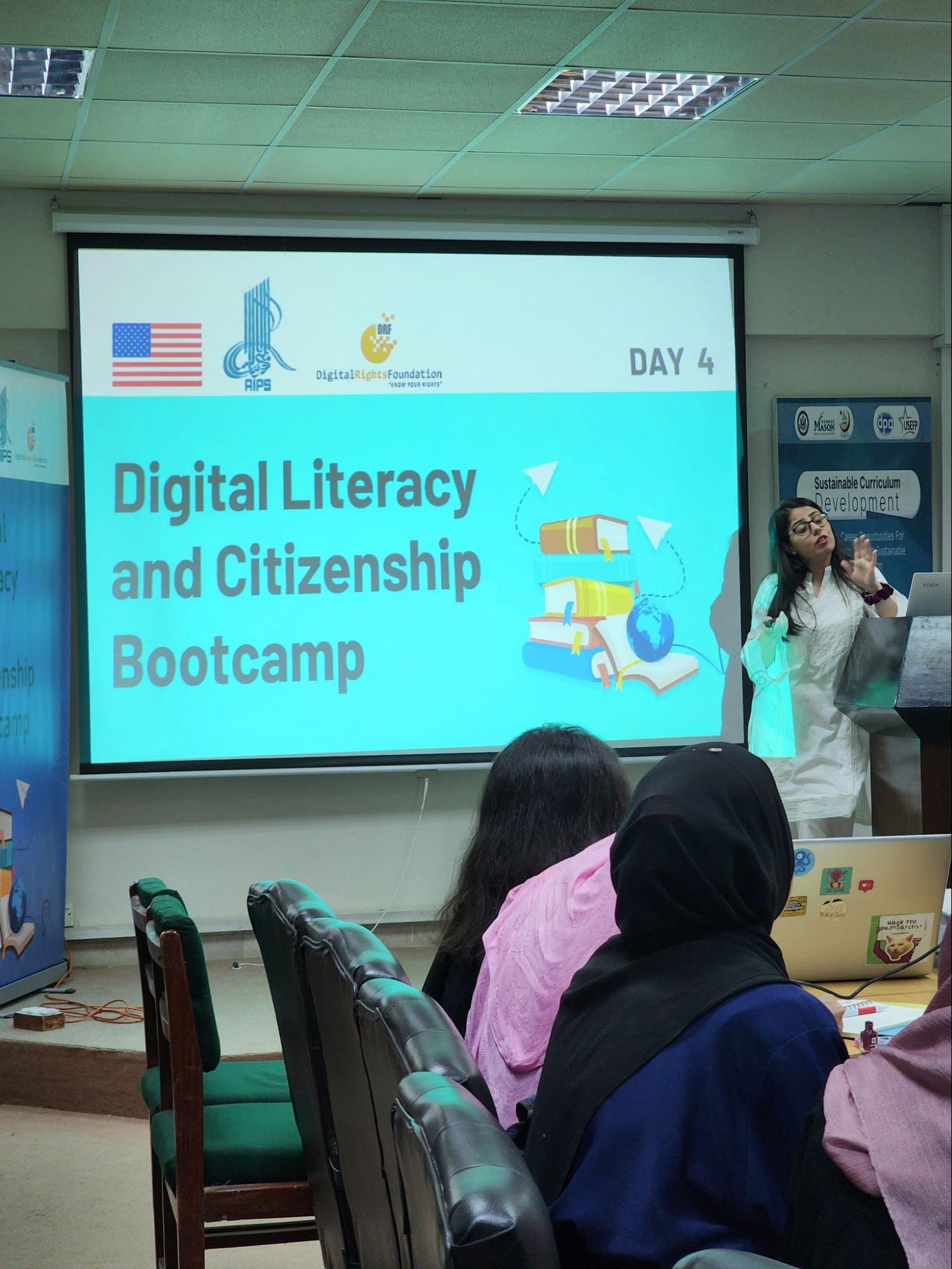 Under a generous grant from the U.S Embassy Islamabad and in collaboration with the American Institute of Pakistan Studies (AIPS), the Digital Rights Foundation, led by Senior Program Manager Zainab Durrani, conducted the inaugural session of the 10-Day Digital Literacy and Citizenship Bootcamp at the University of Karachi between April 22nd and May 3rd, 2024.