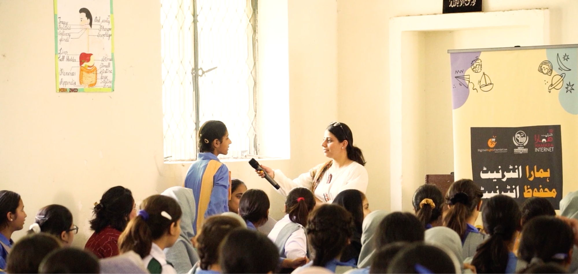 This month DRF held its last session in a government school in Lahore with their Digital Citizens program. 120 students (females only) and 5 teachers were informed about ways of staying safe in online spaces and reporting mechanisms in case of harassment or bullying. The participants were given gift bags with online safety resources and stationary.
