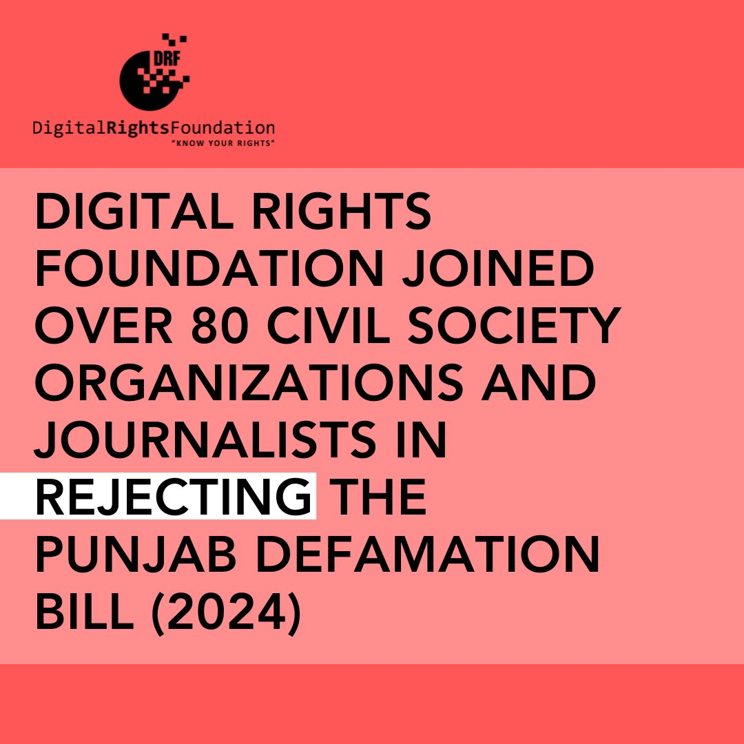 Digital Rights Foundation joined over 80 Civil Society Organizations and Journalists in Rejecting the Punjab Defamation Bill (2024)