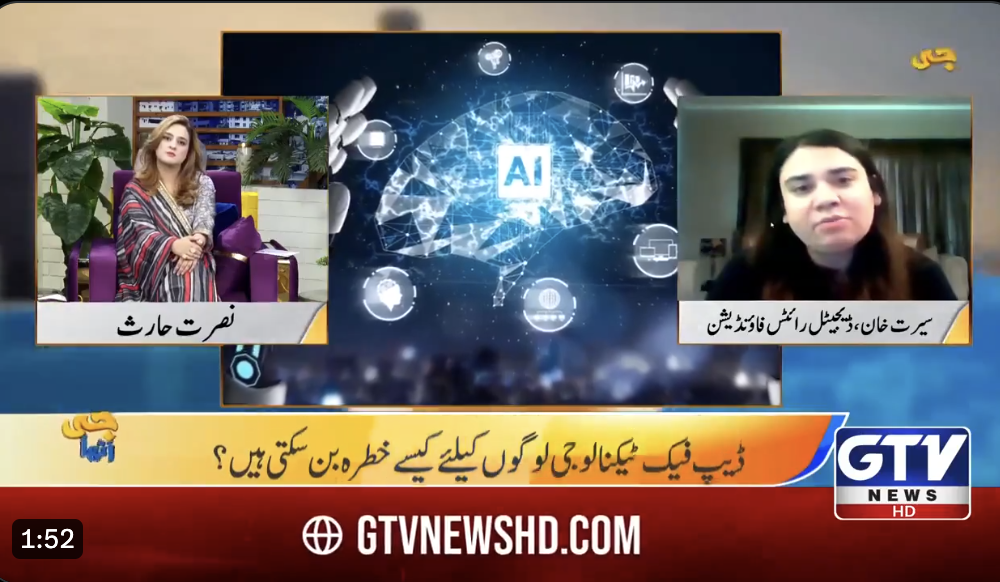 Seerat Khan, DRF’s Program Lead, spoke with GTV News about the fear surrounding AI, particularly the proliferation of deep fake imagery. Women are the most vulnerable to this behavior, and it has the potential to permanently alter their lives.