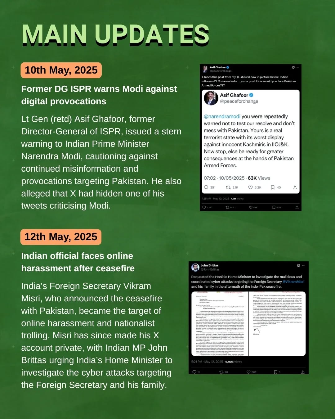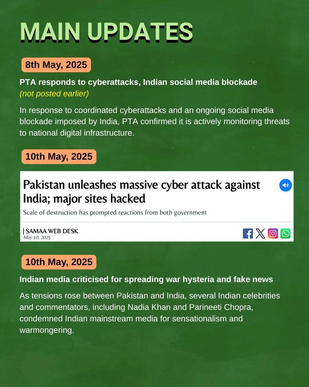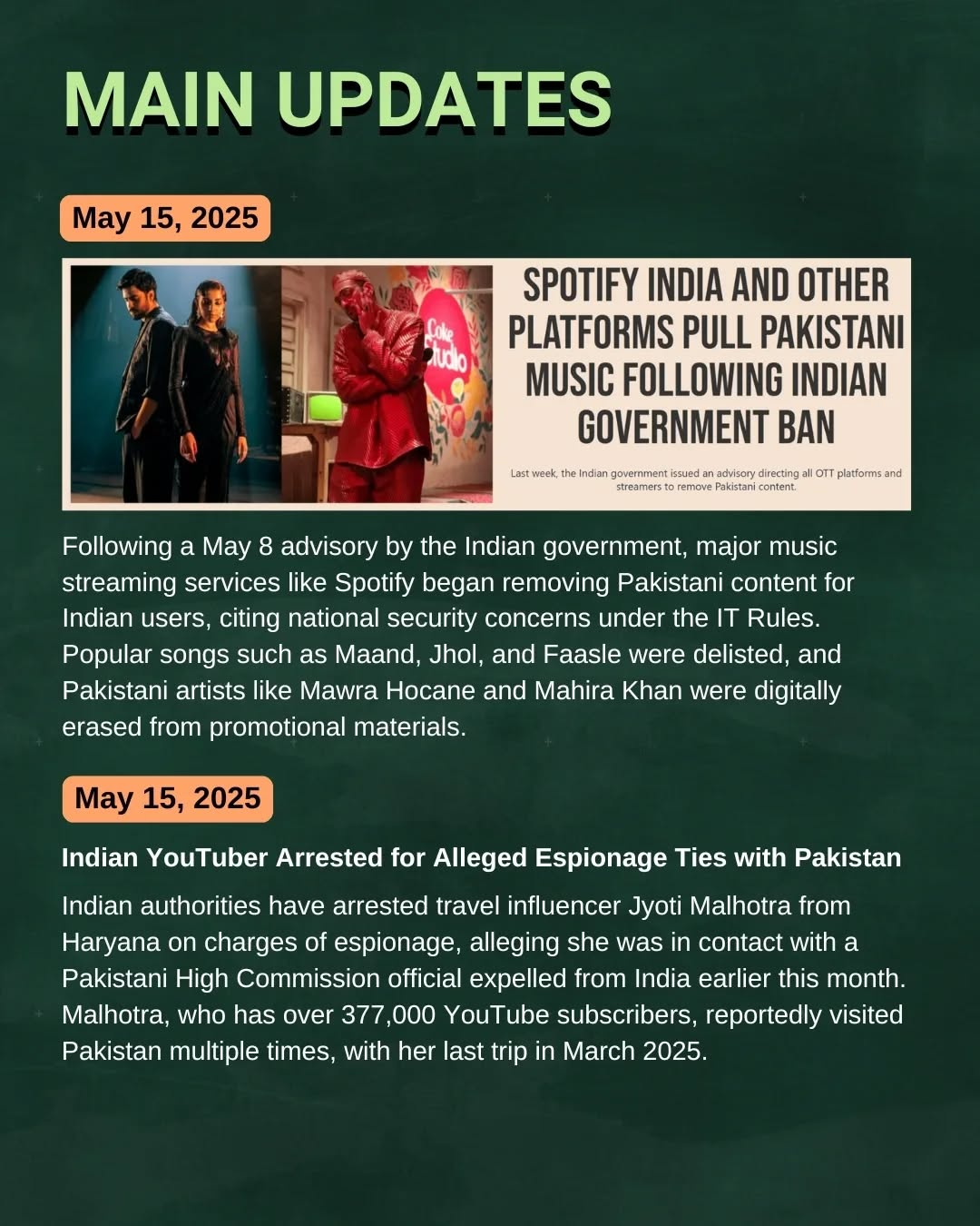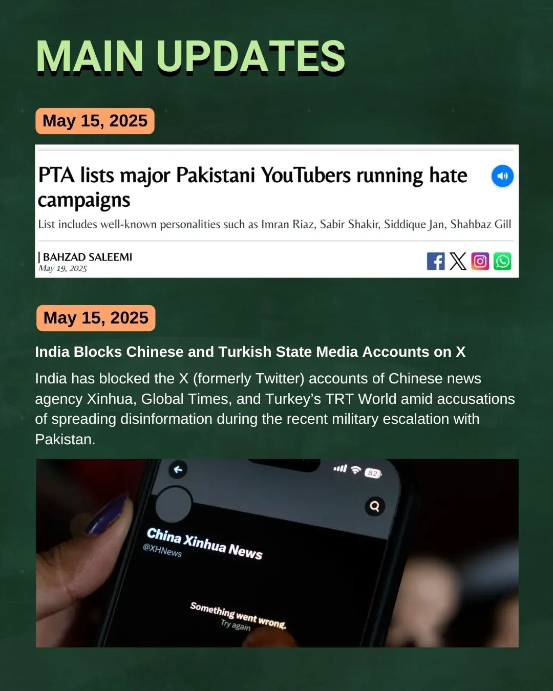 DRF continued to provide weekly updates from its Digital Rights Tracker, However, given the rapid pace of escalations between India and Pakistan in May, a limited edition Indo-Pak Escalations Tracker was launched to provide frequent updates on cybersecurity breaches, arbitrary online restrictions, and misinformation/disinformation.