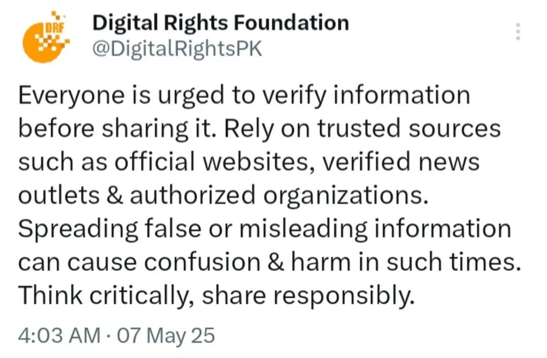 On 7 May, at the onset of escalations between India and Pakistan, and amidst significant panic, there was a proliferation of misinformation being shared online. DRF quickly issued a statement to caution citizens against spreading information without verification, and urged everyone to share responsibly.