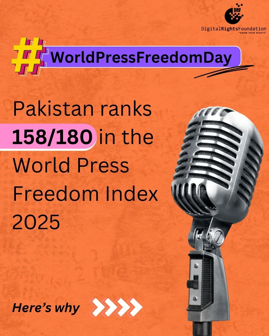For International World Press Freedom Day, DRF drew attention to Pakistan’s latest ranking in the World Press Freedom Index 2025, i.e., 158/180. This ranking is a drop of six places from Pakistan’s ranking in 2024. Read our analysis on the shrinking space for press freedom here.