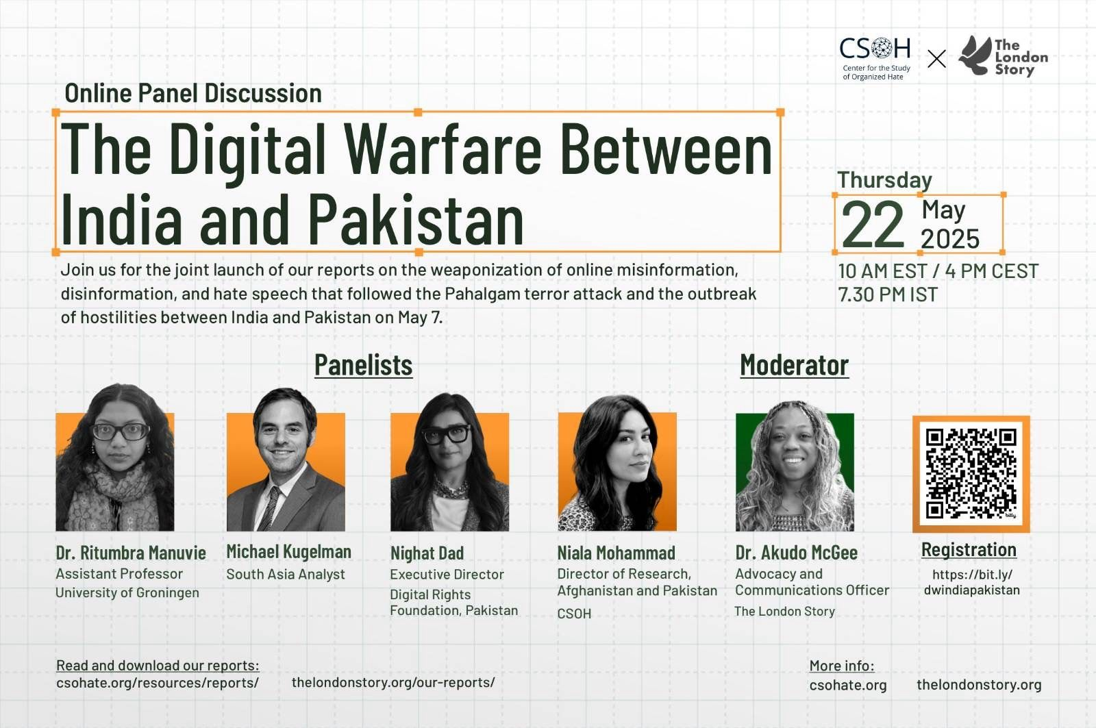 DRF ED Nighat Dad spoke on a panel discussion titled “The Digital Warfare Between India and Pakistan on 22 May. The panel highlighted the rise of online hate, misinformation, and disinformation after the Pahalgam attack and outbreak of hostilities between India and Pakistan.