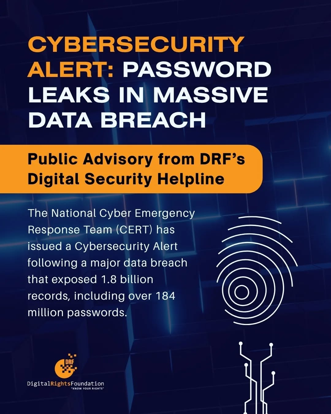 The Helpline issued a resource list of safety tools to navigate travel with digital risks like device searches or data extraction. A public advisory was also issued when the National Cyber Emergency Response Team (CERT) announced a major data breach exposing over 184 million passwords.