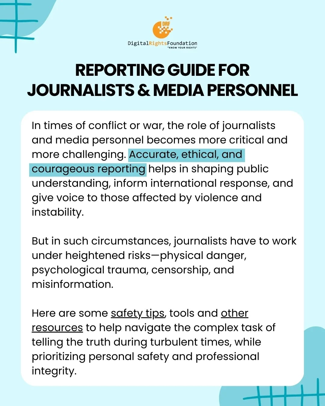 Given the rampant misinformation, digital security threats and psychological overwhelm citizens experienced during the Indo-Pak escalations, DRF issued several resource lists and toolkits to support citizens (as well as journalists) during this precarious period.