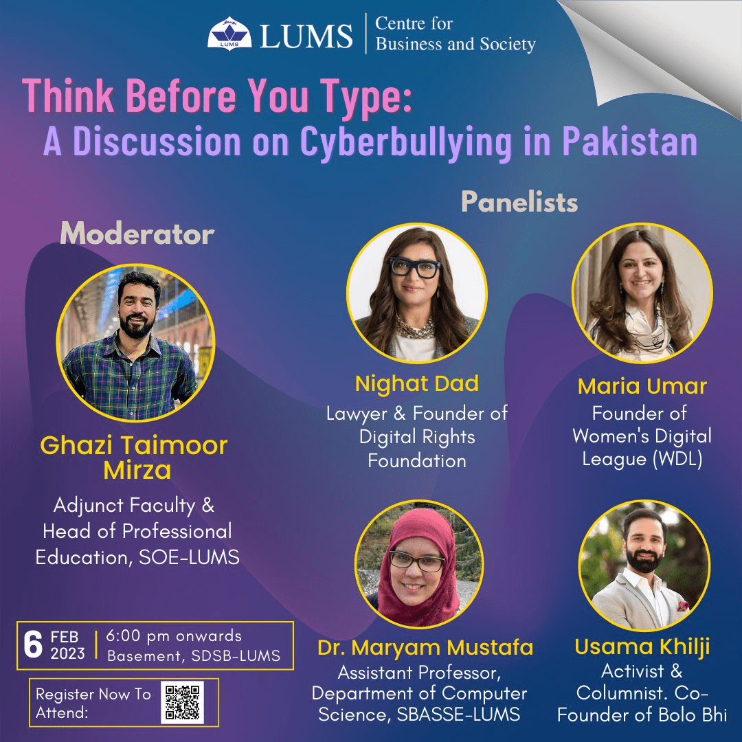 Panel Discussion on ‘Think Before You Type: A Discussion on Cyberbullying in Pakistan’ at LUMS