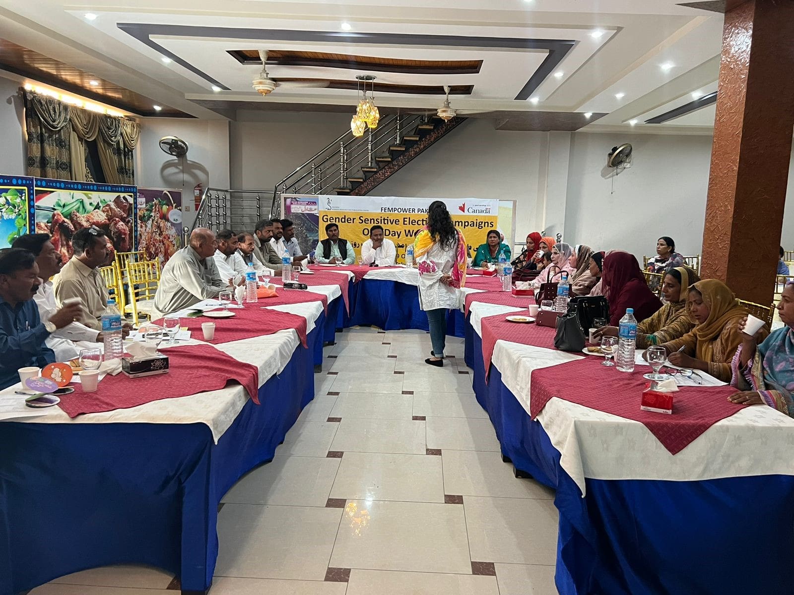 Further, a detailed discussion was held regarding Pakistan’s election-related laws as well as its legal obligations to the international community. Toward the end of the workshop, all participants engaged in an activity of making manifesto points for women, disabled, Khawaja Sira, children, and religious minorities.