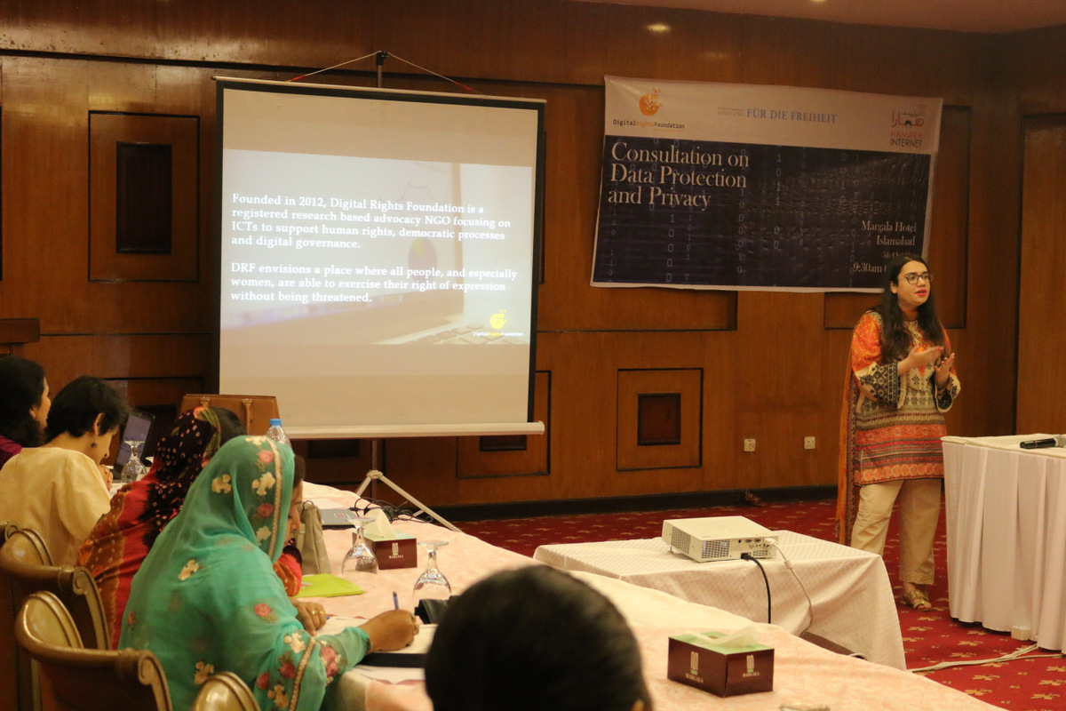Digital Rights Foundation hosted the Hamara Internet: multi stakeholder Consultation on Data Protection and Privacy in collaboration with our partners Fur Die Freiheit (FNF) with lawyer, journalists and civil society members on the 5th of October. The consultation focused on the Personal Data Protection Bill 2018 and advocated for privacy rights in Pakistan. Participants were enthusiastic to give recommendations regarding the the bill and also emphasized on similar consultations happening in other cities.