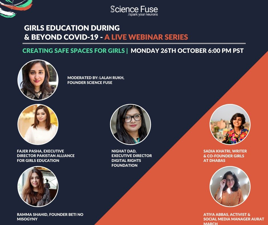 Science Fuse conducted it’s 4th webinar on girls education during and beyond COVID19. The webinar focused on creating safes for girls both in online and offline spaces. Nighat Dad of DRF participated in the webinar and shed light on how important it is for women to stand together and make online spaces safe just like offline spaces.