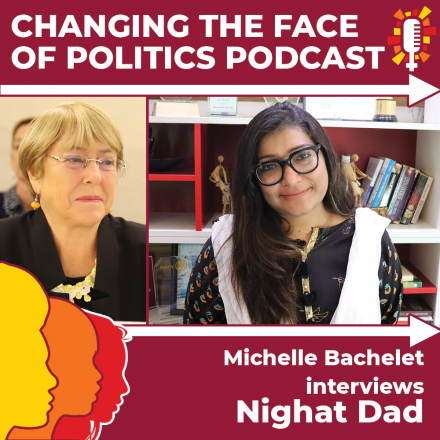 DRF’s Nighat Dad took part in a podcast on changing the face of politics with Michelle Bachelet. Nighat Dad highlighted the importance of digital rights and gender equality in a democracy with the former president of Chile Michelle.
