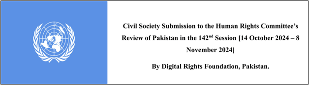 November 26, 2024DRF made a civil society submission report to the UN Human Rights Committee (HRC) for its second state review of Pakistan’s progress under the International Covenant on Civil and Political Rights (ICCPR) obligations. The ICCPR commits nations to respect civil and political rights, including the right to life, freedom of religion, freedom of speech, freedom of peaceful assembly, electoral rights and rights to due process. DRF raised serious concerns about Pakistan’s growing censorship and restrictive laws that endanger free speech, privacy, and press freedom, especially for journalists. Read more here.