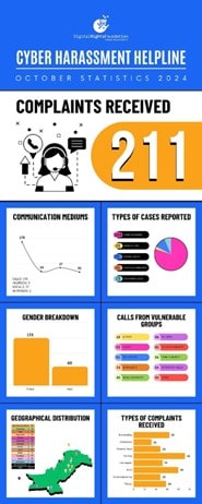 The Cyber Harassment Helpline received 211 complaints in total in October 2024, with 151 complaints by women.
