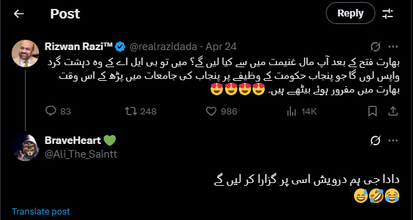 On the other hand, Pakistani X accounts made misogynistic comments sexualising Indian celebrities, referring to them as “maal-e-ghaneemat”, or “spoils of war”.