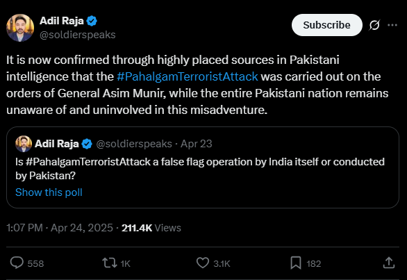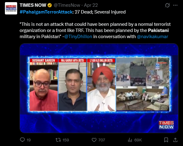 The allegation of Pakistani military involvement was propagated by Indian news channel Times Now, which has been spreading much misinformation and fake news around the Pahalgam attack, including the viral couple video, which will be discussed further on.