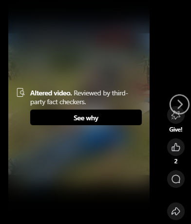 While to Meta’s credit, many of the most viral misinformative videos about the dancing couple were either removed or taken down by the media outlets who published them, and there was at least one case of a label being added to an AI-generated post, as mentioned above, these posts had already gone viral before such measures were employed, and several popular posts reposting the same misinformation are still up on Facebook and Instagram.