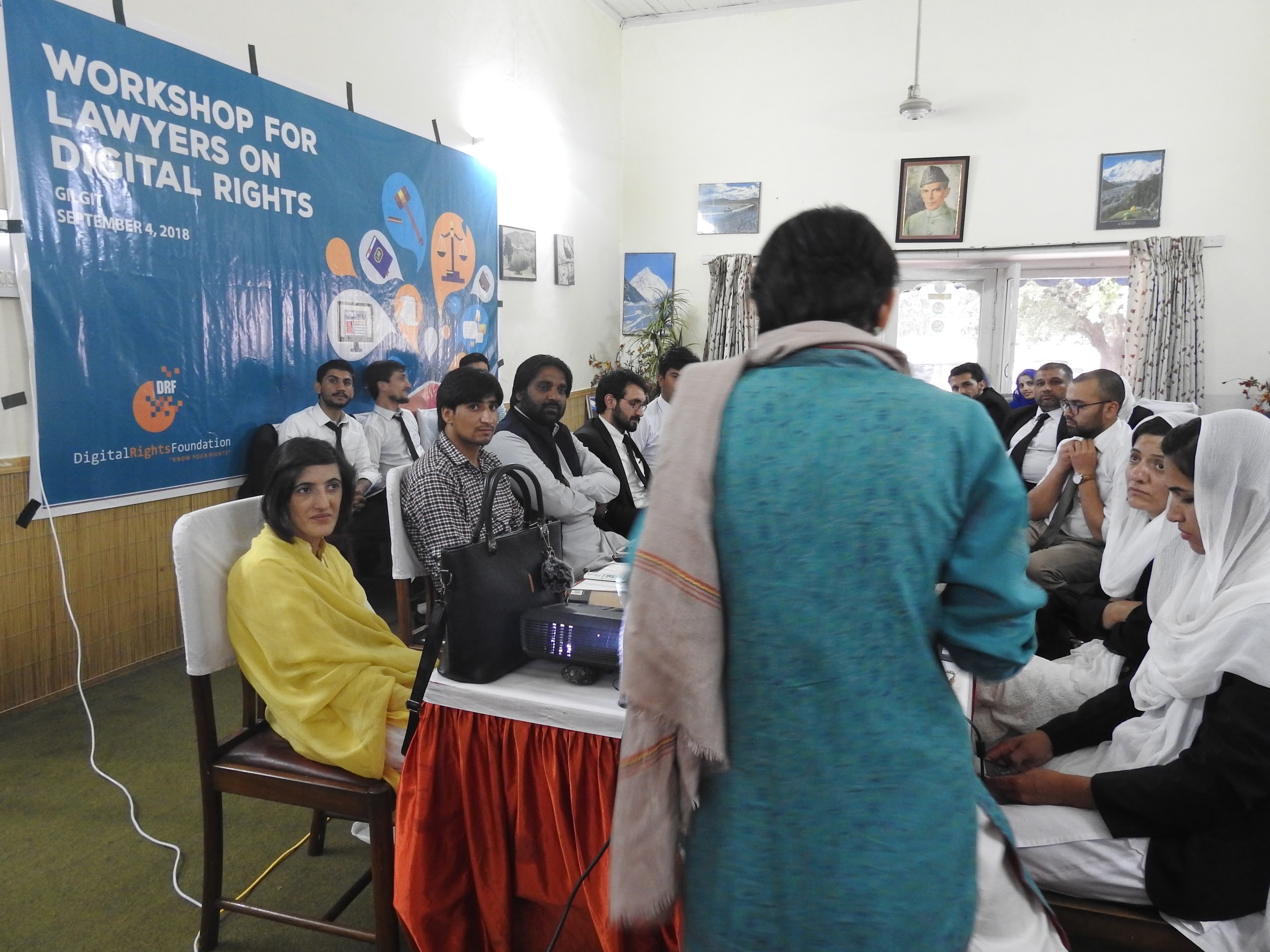 On September 4th 2018, DRF conducted a workshop which was held for Lawyers in Gilgit, focusing on creating awareness regarding digital rights and the legal landscape that governs digital platforms. Around 25 lawyers participated in the session. The participants were also given specifically designed toolkits, to guide them on how they can make online spaces safe for themselves by adopting various tools and resources available to them.