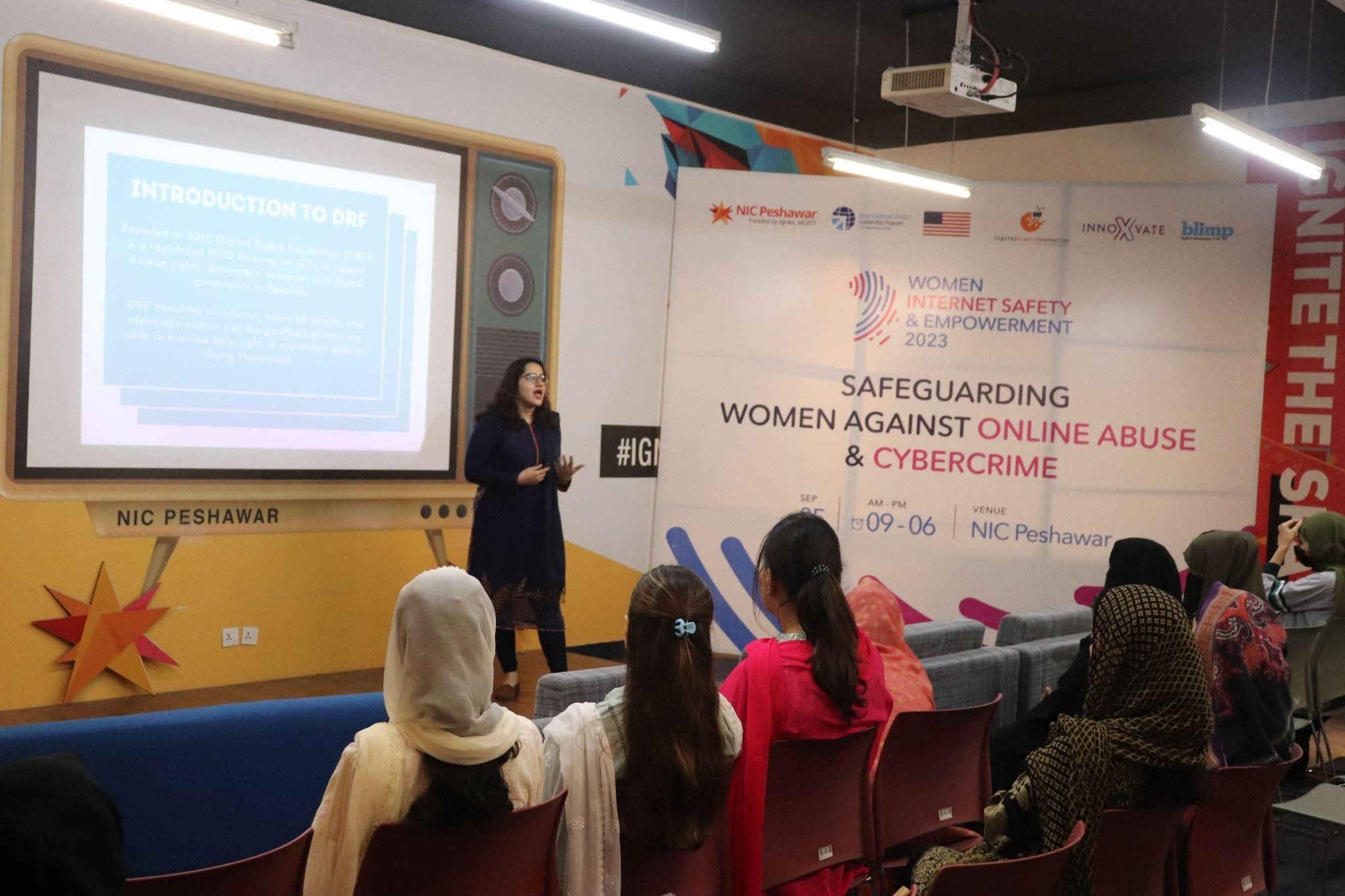The session on ‘Safeguarding Women against Online Abuse and Cyber Crime’ was conducted by Digital Rights Foundation’s Communication Manager and Digital Security Trainer in NIC Peshawar on 5th September, 2023. The training’s goal was to provide an overview of digital safety awareness as well as knowledge of combating online abuse and cyber crime. The audience consisted of Peshawar women from various sociocultural backgrounds.