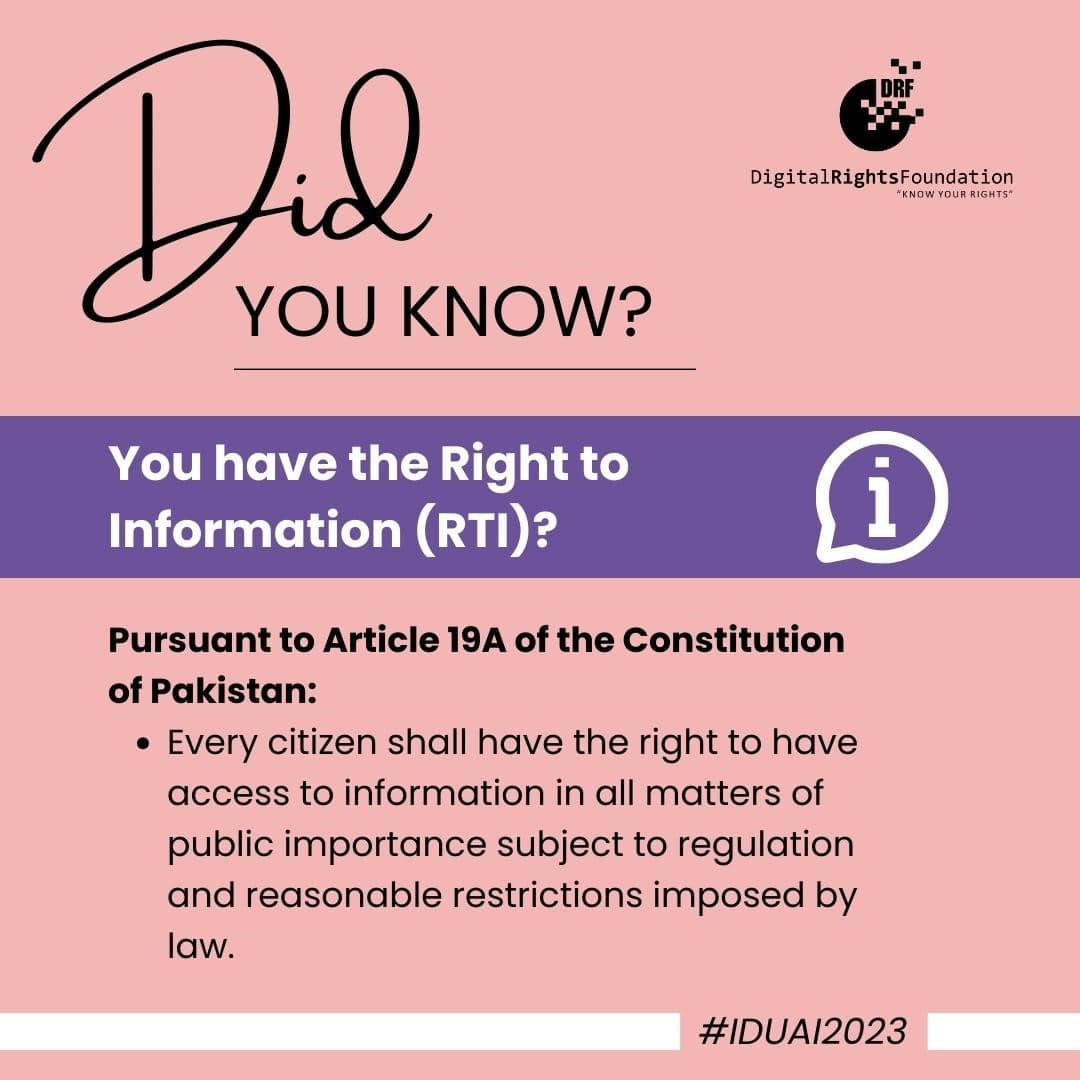 DRF has started on an online campaign on ‘Did You Know?’, to create mass awareness regarding the digital landscape in Pakistan and the rights afforded under it. It started as a part of The International Day for Universal Access to Information.