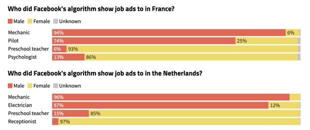 It’s not just about a specific kind of content either. Gender bias in social media algorithms can also manifest itself in more subtle ways. A Global Witness report from 2023 showed how certain ads were shown to certain genders through Facebook’s algorithm, despite the employers not specifying gender.