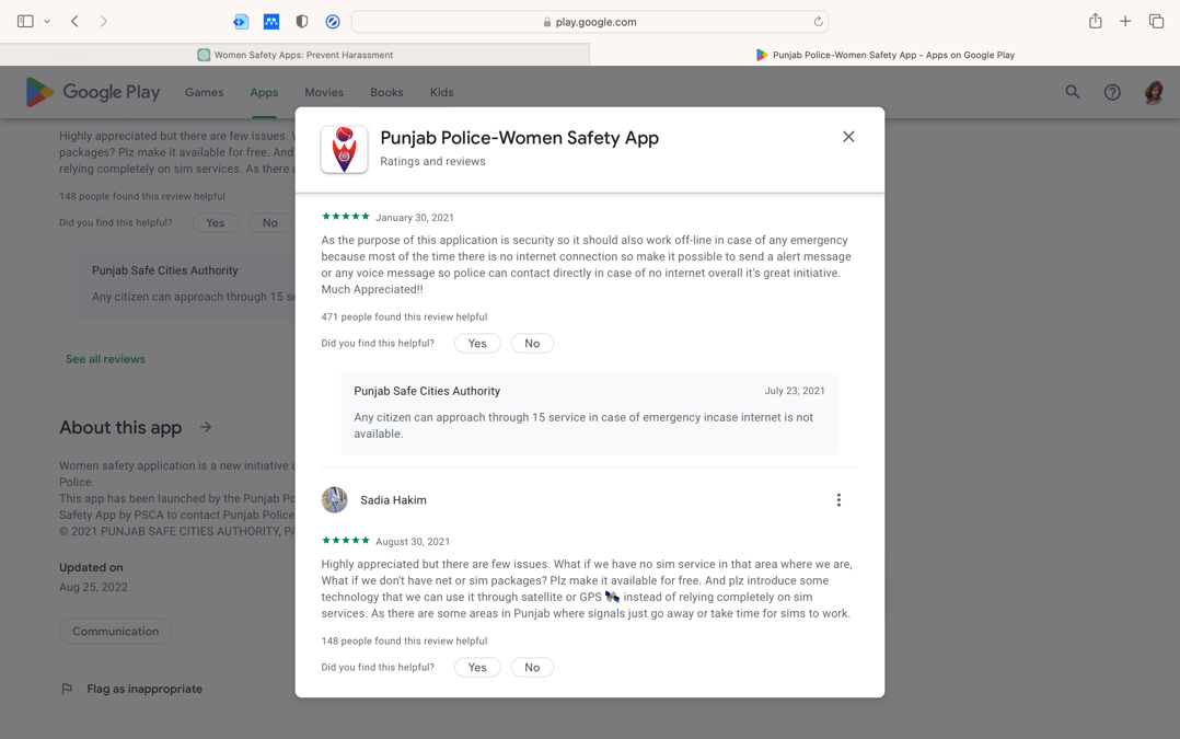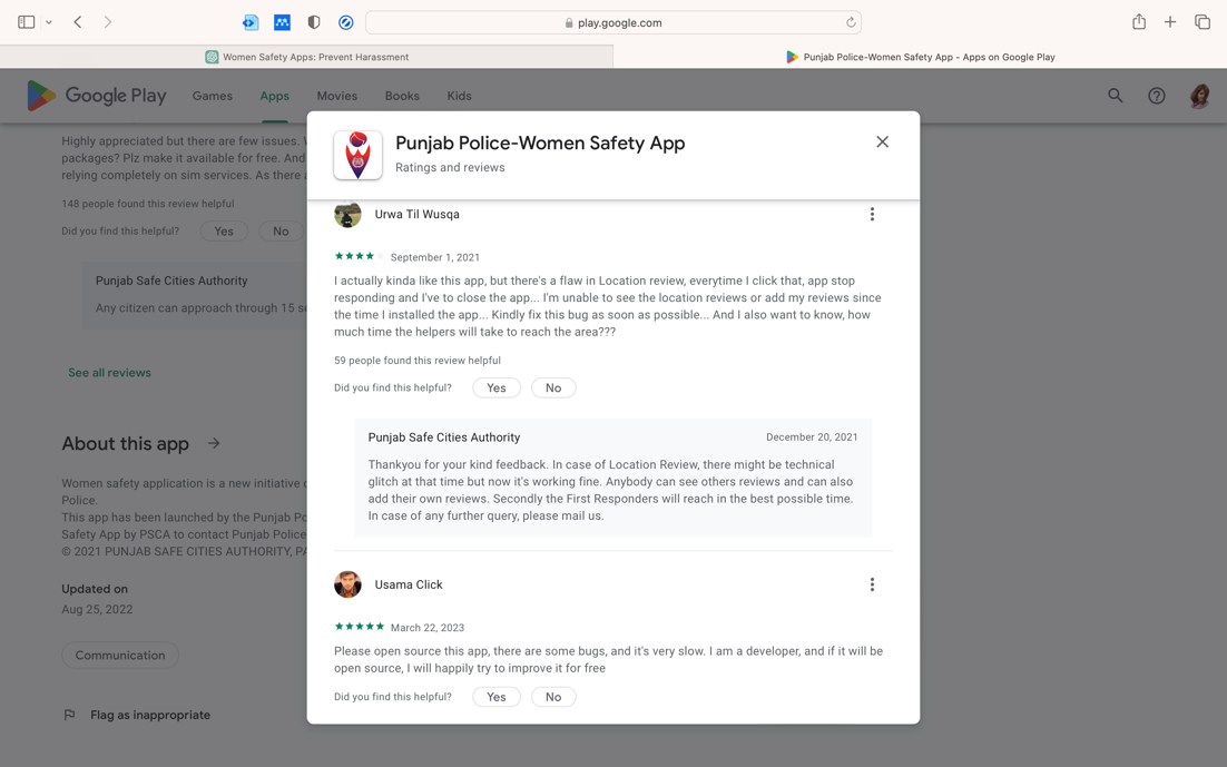 On the other hand, the Balochistan Women Safety App, although having been downloaded over 500 times, has not received any reviews on the Google Play Store. It was last updated in April 2022.